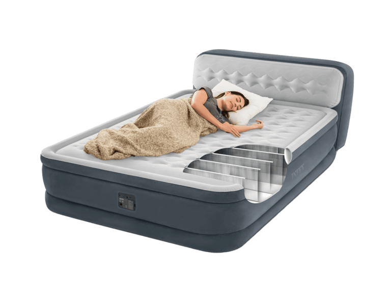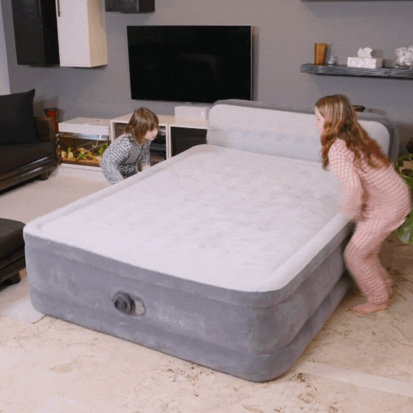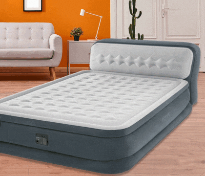 Elegante e moderno, con una testiera imbottita che sembrava una vera e propria testiera da letto. La pompa integrata gonfiava il materasso in pochi minuti, senza bisogno di strumenti.
